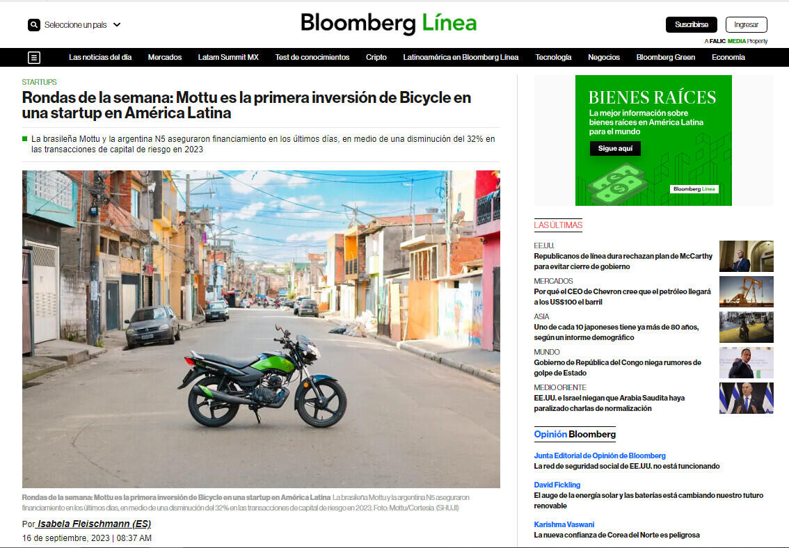 Rondas de la semana: Mottu es la primera inversión de Bicycle en una startup en América Latina