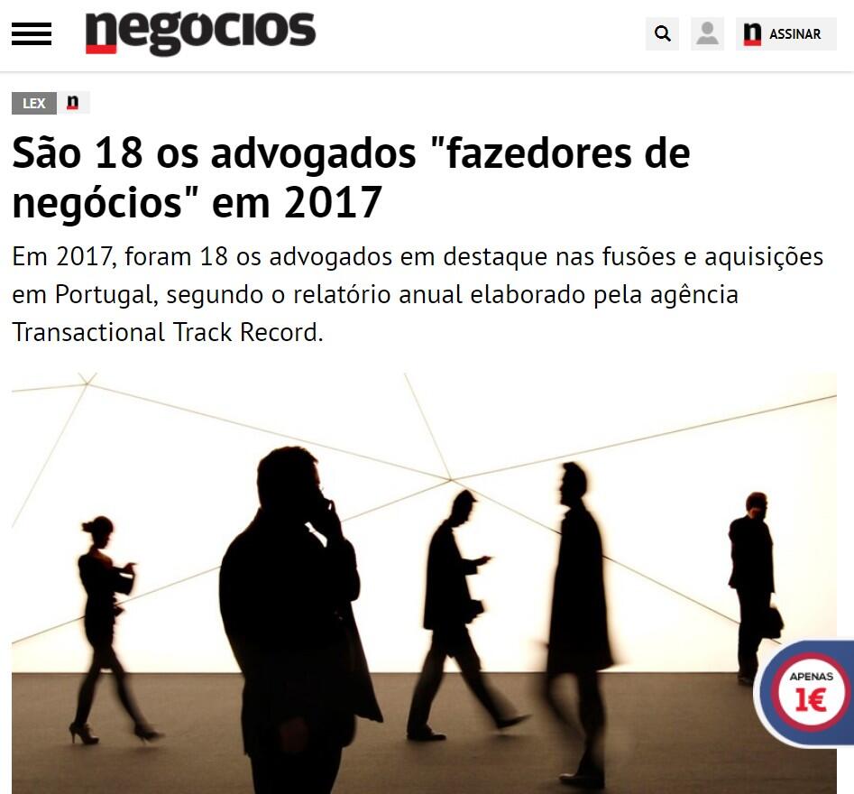 Um grupo restrito de 18 advogados destacou-se, em 2017, como "fazedores de negócios" enquanto assessores legais no mercado português de fusões e aquisições (F&A), de acordo com o relatório anual da Transactional Track Record.