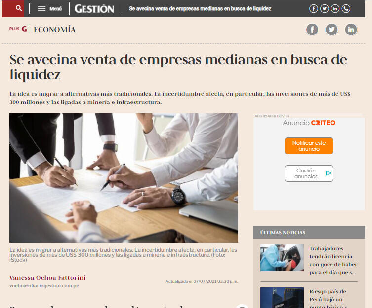 Pese a que la coyuntura electoral impactó en los resultados del segundo trimestre del mercado de fusiones y adquisiciones, en los siguientes meses veremos dinamismo, el que ya ha empezado a darse pero en el rubro de las empresas medianas, que optarían por vender con el fin de obtener mayor liquidez.