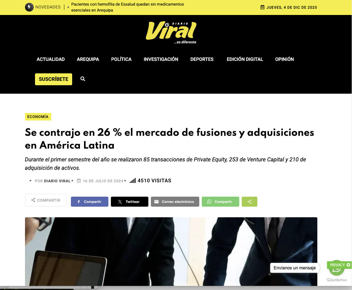 Se contrajo en 26 % el mercado de fusiones y adquisiciones en América Latina