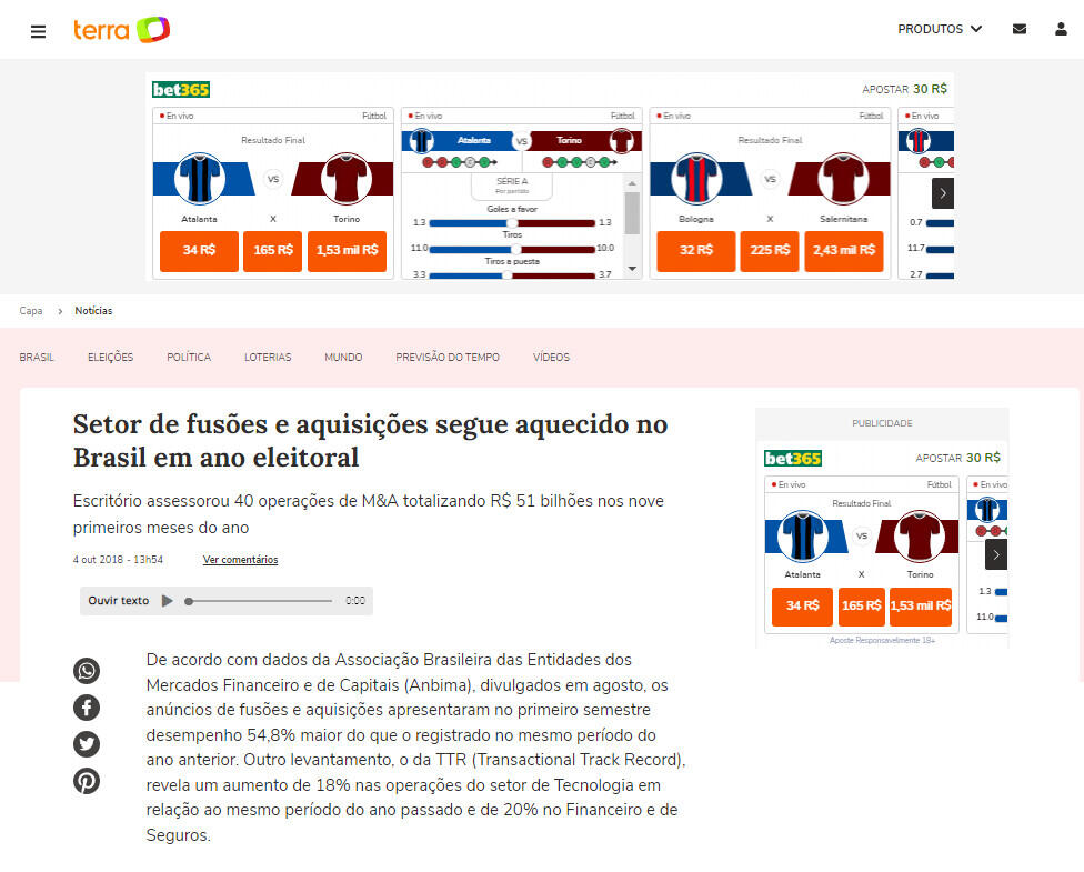 Setor de fusões e aquisições segue aquecido no Brasil em ano eleitoral