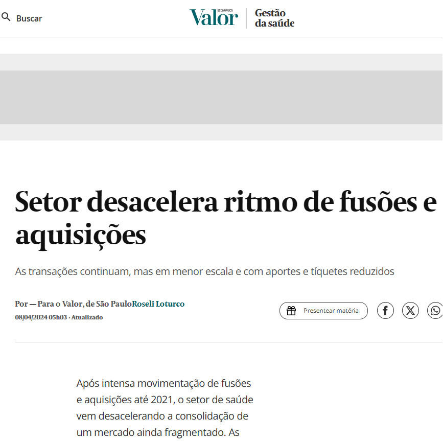 Após intensa movimentação de fusões e aquisições até 2021, o setor de saúde vem desacelerando a consolidação de um mercado ainda fragmentado. As transações continuam acontecendo, mas em menor escala e com aportes e tíquetes reduzidos. A última grande operação, a aquisição da operadora de planos de saúde Amil por R$ 11 bilhões, foi feita em dezembro de 2023 pelo empresário José Seripieri Filho, fundador da Qualicorp, conhecido como Júnior. De lá para cá, os negócios são de volumes financeiros menores.
