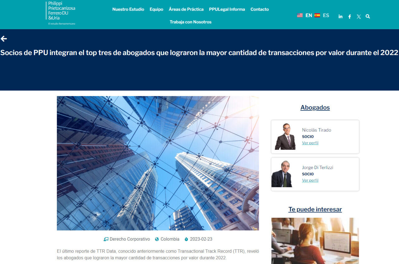 Socios de PPU integran el top tres de abogados que lograron la mayor cantidad de transacciones por valor durante el 2022