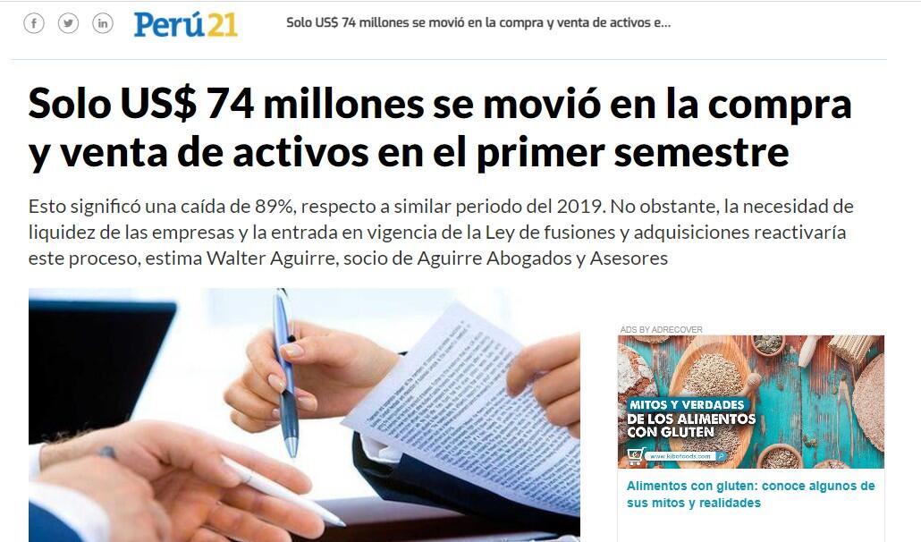 Aguirre, además, asegura que con la ley de control previo de fusiones y adquisiciones, que entrará en vigencia en marzo de 2021, los procesos de compra y venta de activos también se acelerarán, a fin de evitar someterse a este paso previo.