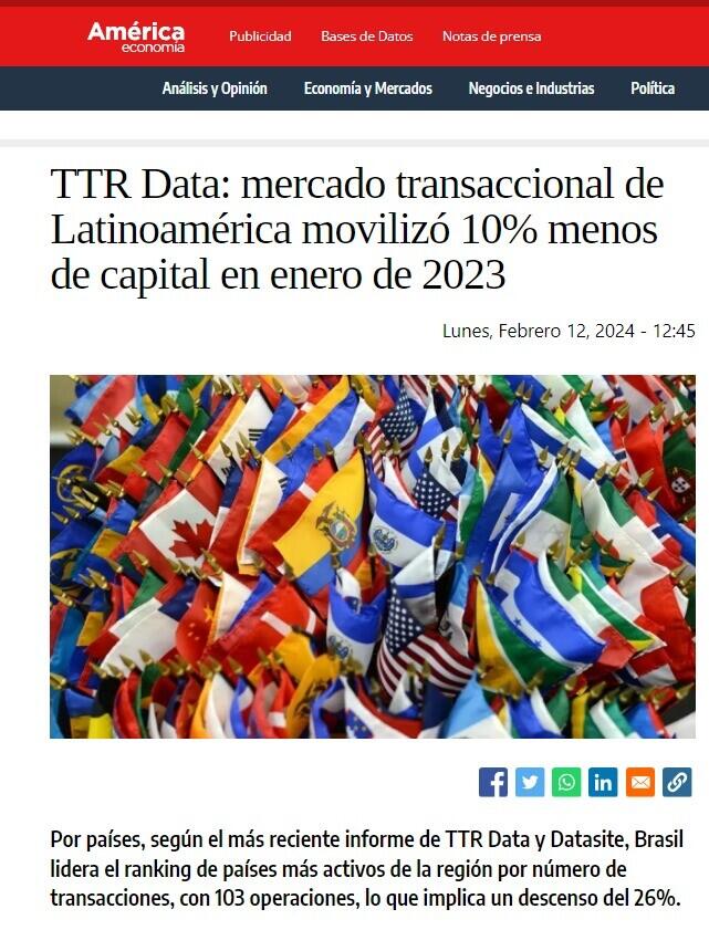 TTR Data: mercado transaccional de Latinoamérica movilizó 10% menos de capital en enero de 2023