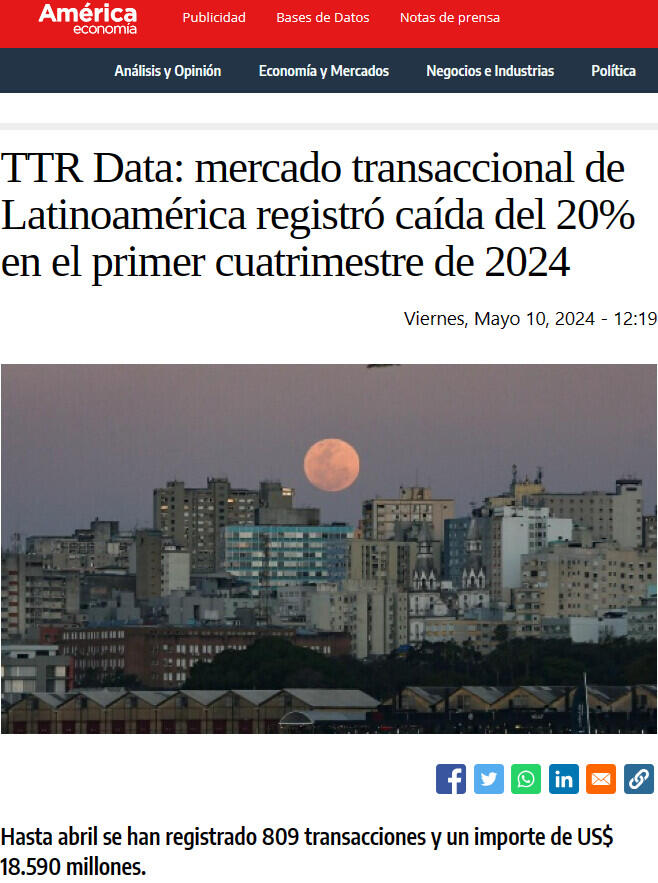 TTR Data: mercado transaccional de Latinoamérica registró caída del 20% en el primer cuatrimestre de 2024