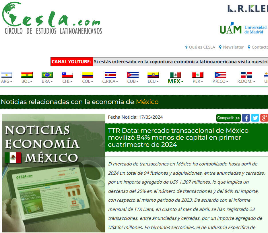 TTR Data: mercado transaccional de México movilizó 84% menos de capital en primer cuatrimestre de 2024