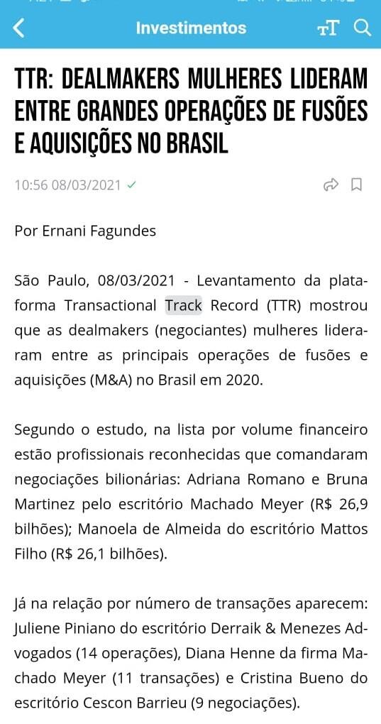 TTR: Dealmakers mulheres lideram entre grandes operações de fusões e aquisições no Brasil