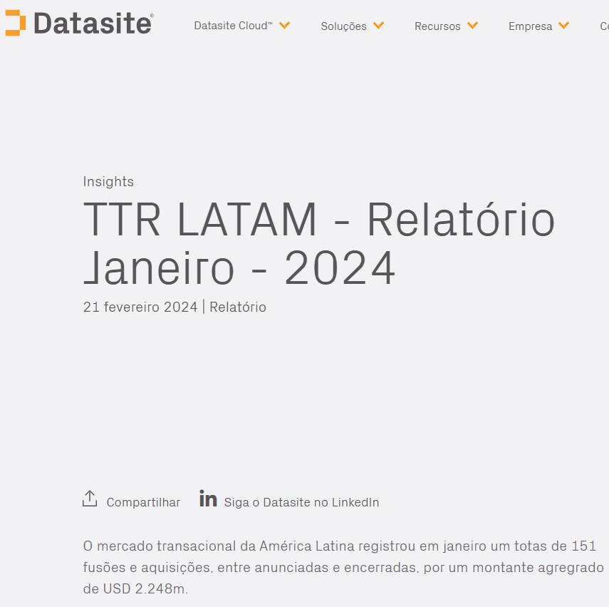 O mercado transacional da América Latina registrou em janeiro um totas de 151 fusões e aquisições, entre anunciadas e encerradas, por um montante agregrado de USD 2.248m.