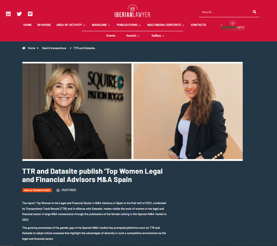 TTR and Datasite publish ‘Top Women Legal and Financial Advisors M&A Spain