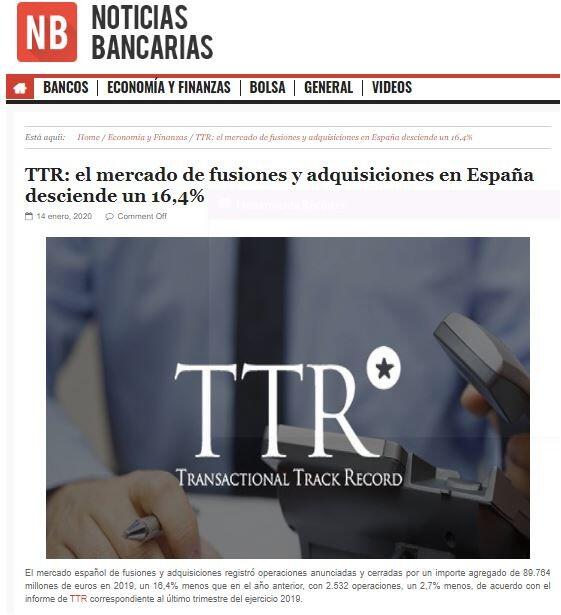 TTR: el mercado de fusiones y adquisiciones en Espaņa desciende un 16,4%
