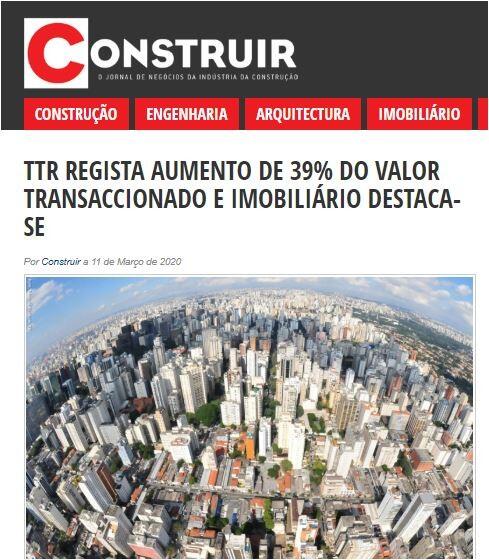 TTR regista aumento de 39% do valor transaccionado e imobiliário destaca-se.
