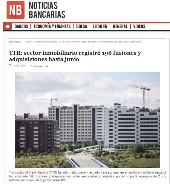 TTR: sector inmobiliario registrķ 198 fusiones y adquisiciones hasta junio