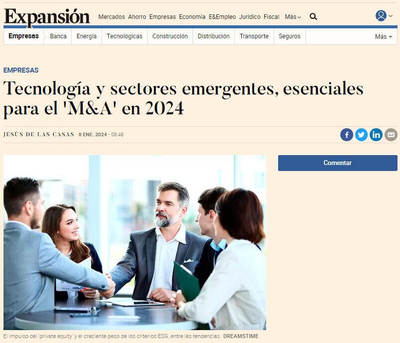 Tras un 2023 en el que el mercado global de fusiones y adquisiciones se ha visto condicionado por las dificultades en el acceso a la financiación y el ajuste de las valoraciones, Gutiérrez señala que "2024 se presenta como un año apasionante en el que el objetivo será recuperar los niveles de años anteriores y aflorar las buenas oportunidades de inversión que hay en España".
