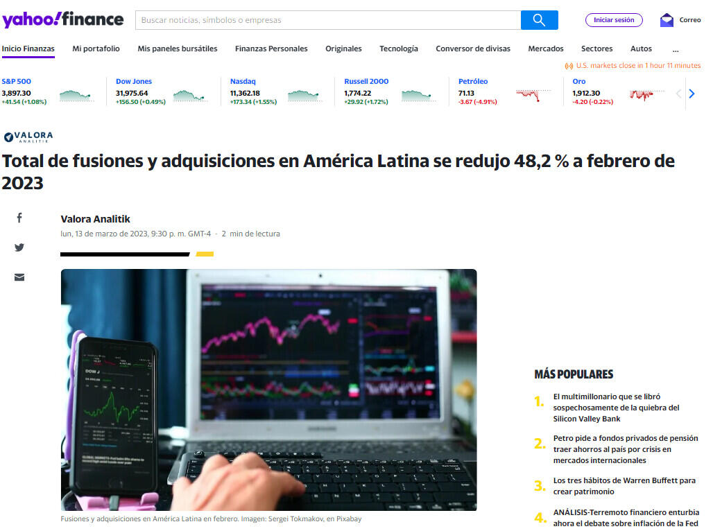 Total de fusiones y adquisiciones en América Latina se redujo 48,2 % a febrero de 2023