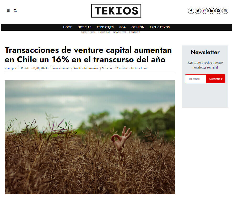 Transacciones de venture capital aumentan en Chile un 16% en el transcurso del aņo