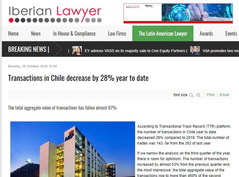 Chilean transactions are experiencing a massive impact in 2020; there are not many discussion onto this.