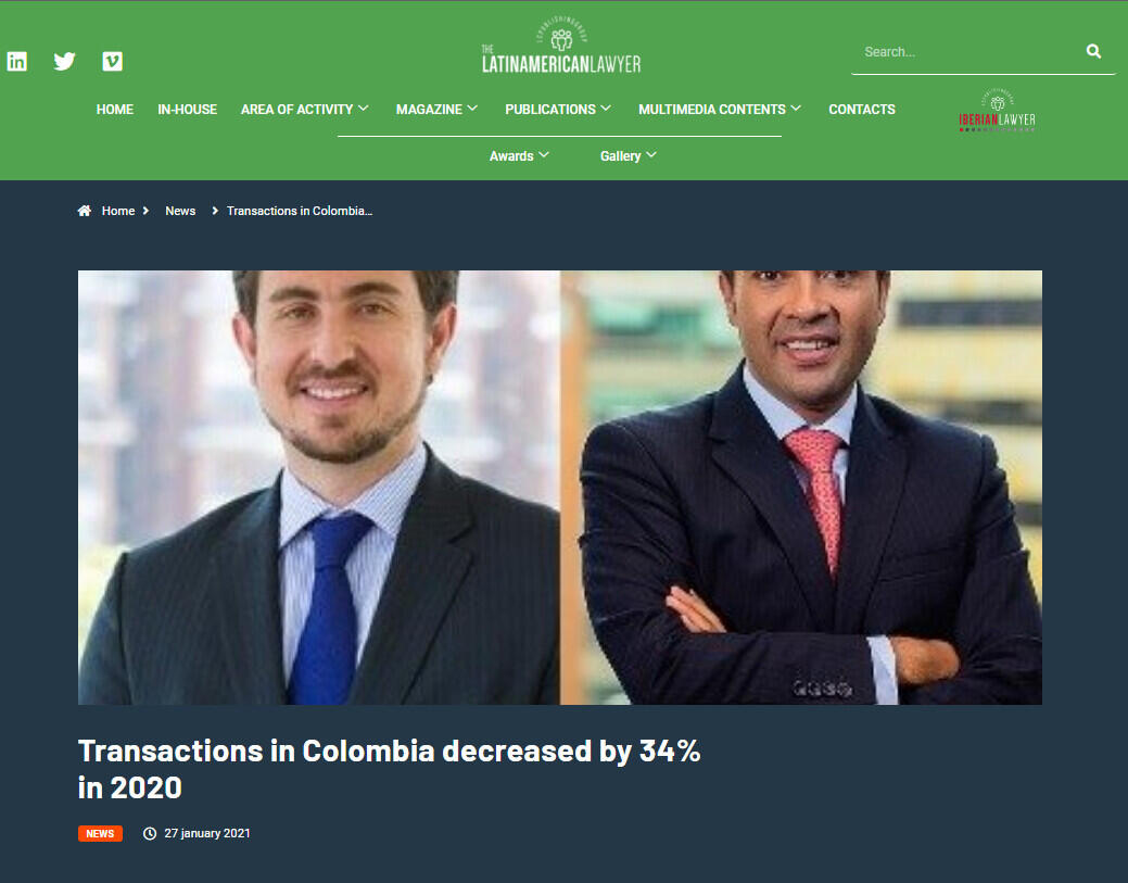 According to Transactional Track Record (TTR) platform, the number of transactions in Colombia in 2020 decreased by 34% compared to 2019. The total number of trades was 152, in comparison from 231 of the previous year. Thus extends the tendency of each one of the quarters of the year. (See table below).
