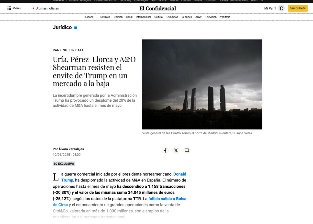 Uría, Pérez-Llorca y A&O Shearman resisten el envite de Trump en un mercado a la baja