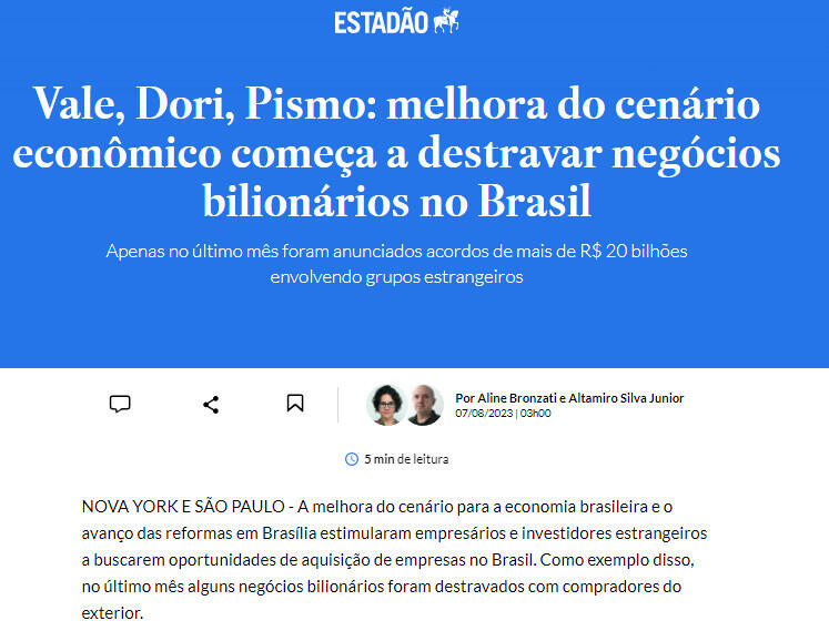 Vale, Dori, Pismo: melhora do cenário econômico começa a destravar negócios bilionários no Brasil