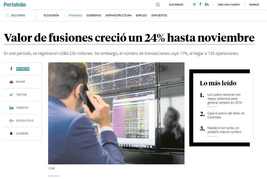 Colombia empató con Perú en el último lugar del ranquin de fusiones y adquisiciones de la región y se ubican como los dos únicos países con resultados positivos en este segmento, según Transactional Track Record (TTR).