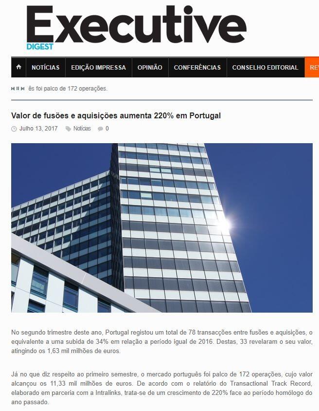 Já no que diz respeito ao primeiro semestre, o mercado português foi palco de 172 operações, cujo valor alcançou os 11,33 mil milhões de euros. De acordo com o relatório do Transactional Track Record, elaborado em parceria com a Intralinks, trata-se de um crescimento de 220% face ao período homólogo do ano passado.