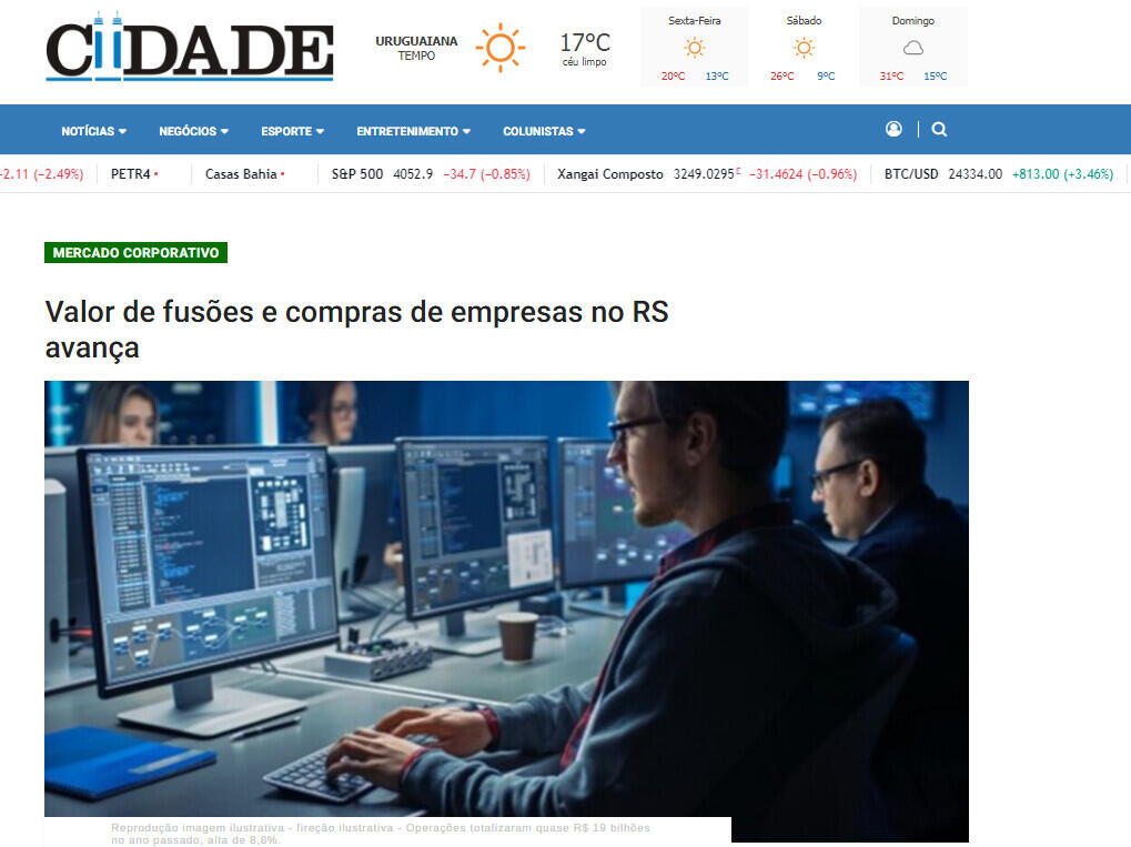 Valor de fusões e compras de empresas no RS avança