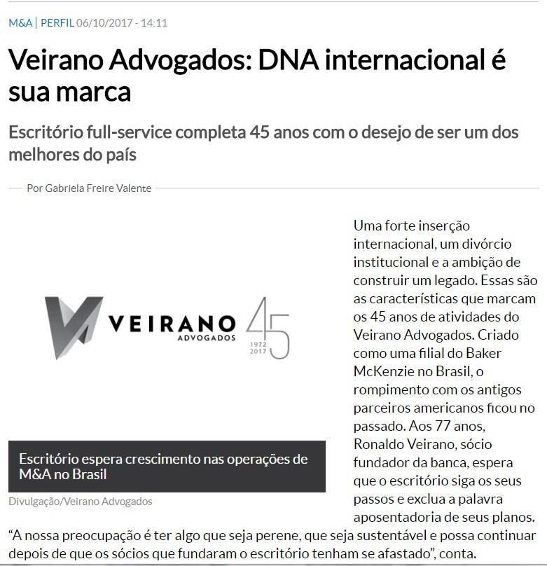Uma forte inserção internacional, um divórcio institucional e a ambição de construir um legado. Essas são as características que marcam os 45 anos de atividades do Veirano Advogados. Criado como uma filial do Baker McKenzie no Brasil, o rompimento com os antigos parceiros americanos ficou no passado. Aos 77 anos, Ronaldo Veirano, sócio fundador da banca, espera que o escritório siga os seus passos e exclua a palavra aposentadoria de seus planos. “A nossa preocupação é ter algo que seja perene, que seja sustentável e possa continuar depois de que os sócios que fundaram o escritório tenham se afastado”, conta.