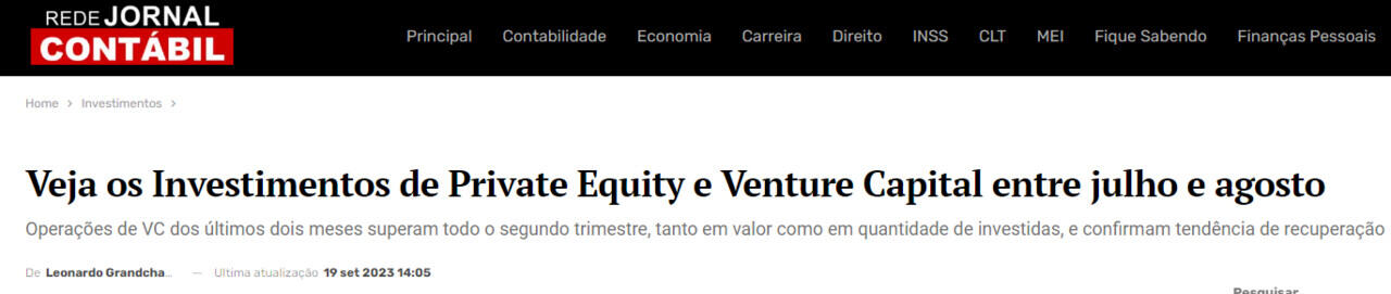 Veja os Investimentos de Private Equity e Venture Capital entre julho e agosto