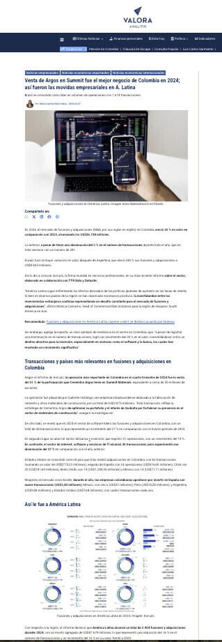 Venta de Argos en Summit fue el mejor negocio de Colombia en 2024; así fueron las movidas empresariales en A. Latina