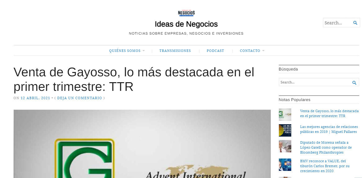 Venta de Gayosso, lo más destacada en el primer trimestre: TTR