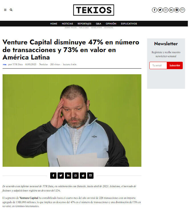 Venture Capital disminuye 47% en número de transacciones y 73% en valor en América Latina