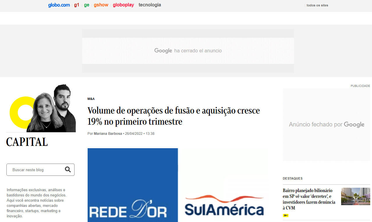 Volume de operações de fusão e aquisição cresce 19% no primeiro trimestre