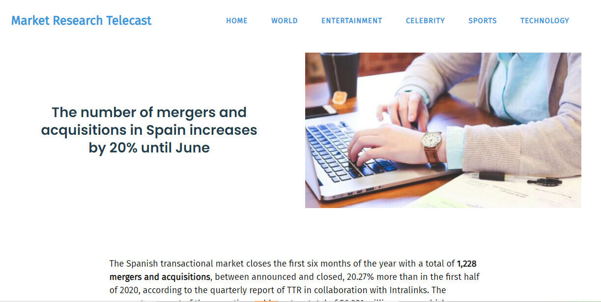 The Spanish transactional market closes the first six months of the year with a total of 1,228 mergers and acquisitions, between announced and closed, 20.27% more than in the first half of 2020, according to the quarterly report of TTR in collaboration with Intralinks. The aggregate amount of the operations adds up to a total of 56,981 million euros, which represents an increase of 21.33% compared to the same period in 2020.