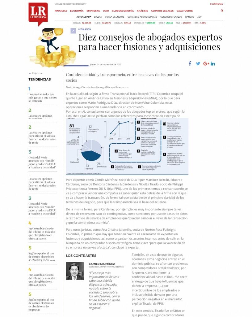 Para expertos como Camilo Martínez, socio de DLA Piper Martínez Beltrán, Eduardo Cárdenas, socio de Dentons Cárdenas & Cárdenas y Nicolás Tirado, socio de Philippi Prietocarrizosa Ferrero DU & Uría (PPU), uno de los primeros temas a revisar cuando se va a comprar o vender una compañía es saber quién está detrás de la firma con la que se va a hacer la transacción, de forma tal que exista desde el principio claridad de los términos del negocio, para que la transparencia sea la base del acuerdo.