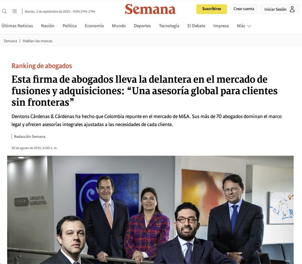 Dentons Cárdenas & Cárdenas ha hecho que Colombia repunte en el mercado de M&A. Sus más de 70 abogados dominan el marco legal y ofrecen asesorías integrales ajustadas a las necesidades de cada cliente.