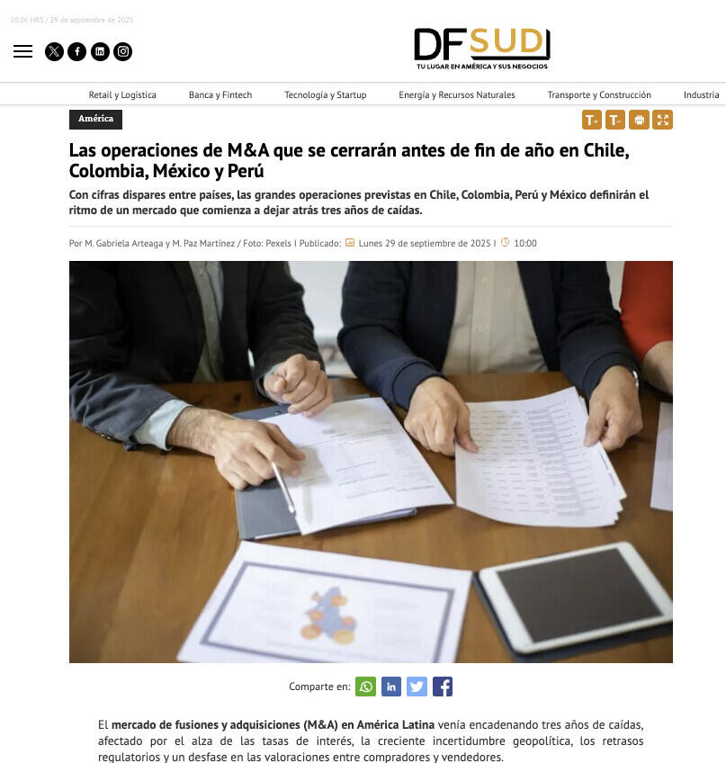 Las operaciones de M&A que se cerrarán antes de fin de año en Chile, Colombia, México y Perú