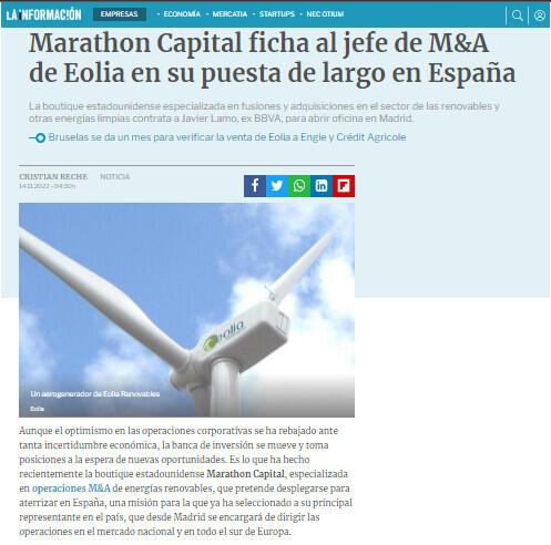Marathon Capital ficha al jefe de M&A de Eolia en su puesta de largo en España