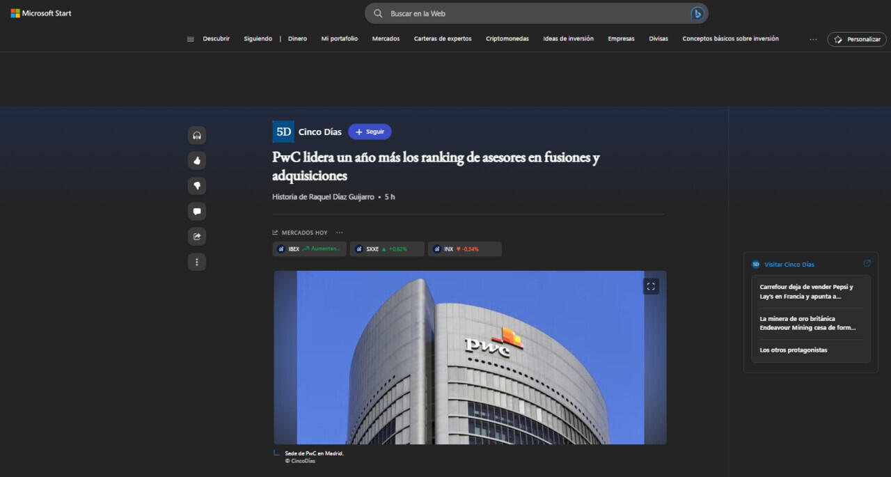 PwC lidera un año más los ranking de asesores en fusiones y adquisiciones