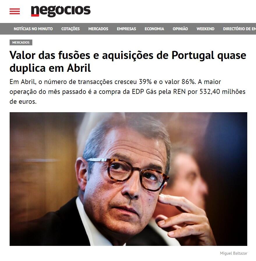 Valor das fusões e aquisições de Portugal quase duplica em Abril