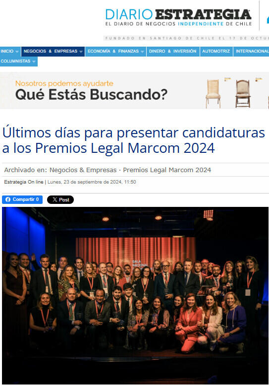 El 4 de octubre termina el plazo para presentar candidaturas a los Premios Legal Marcom 2024. La Gala Nacional del Derecho, en la que se entregarán los Premios Legal Marcom 2024, se celebrará el próximo 29 de noviembre en el Hotel Intercontinental de Madrid.