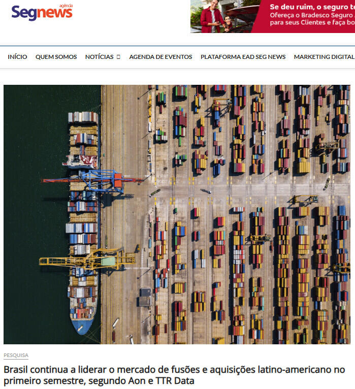 Brasil continua a liderar o mercado de fusões e aquisições latino-americano no primeiro semestre, segundo Aon e TTR Data