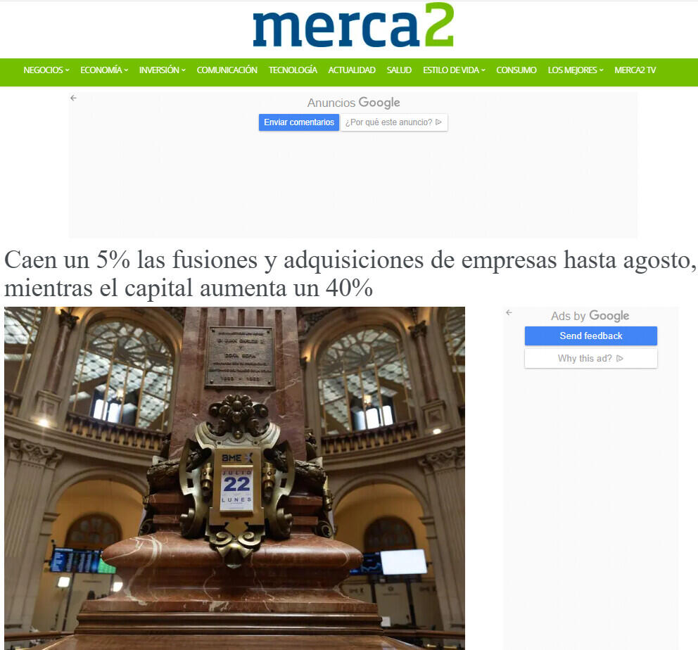 Caen un 5% las fusiones y adquisiciones de empresas hasta agosto, mientras el capital aumenta un 40%