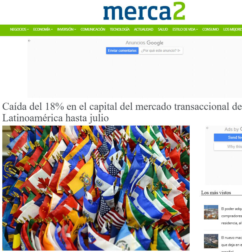 Caída del 18% en el capital del mercado transaccional de Latinoamérica hasta julio