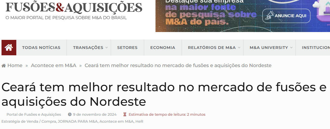 Ceará tem melhor resultado no mercado de fusões e aquisições do Nordeste