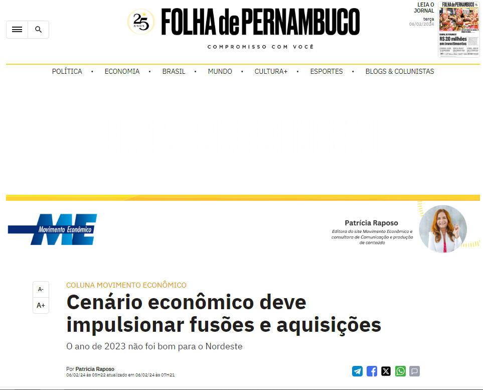 O volume de fusões e aquisições (M&A) no Nordeste foi 24% menor em 2023, em comparação a 2022, e 32% abaixo do registrado em 2021, segundo levantamento da Deloitte com base nos dados da plataforma Transactional Track Record (TTR). Mas a expectativa para 2024 é bem melhor, segundo consultores ouvidos pelo Movimento Econômico.