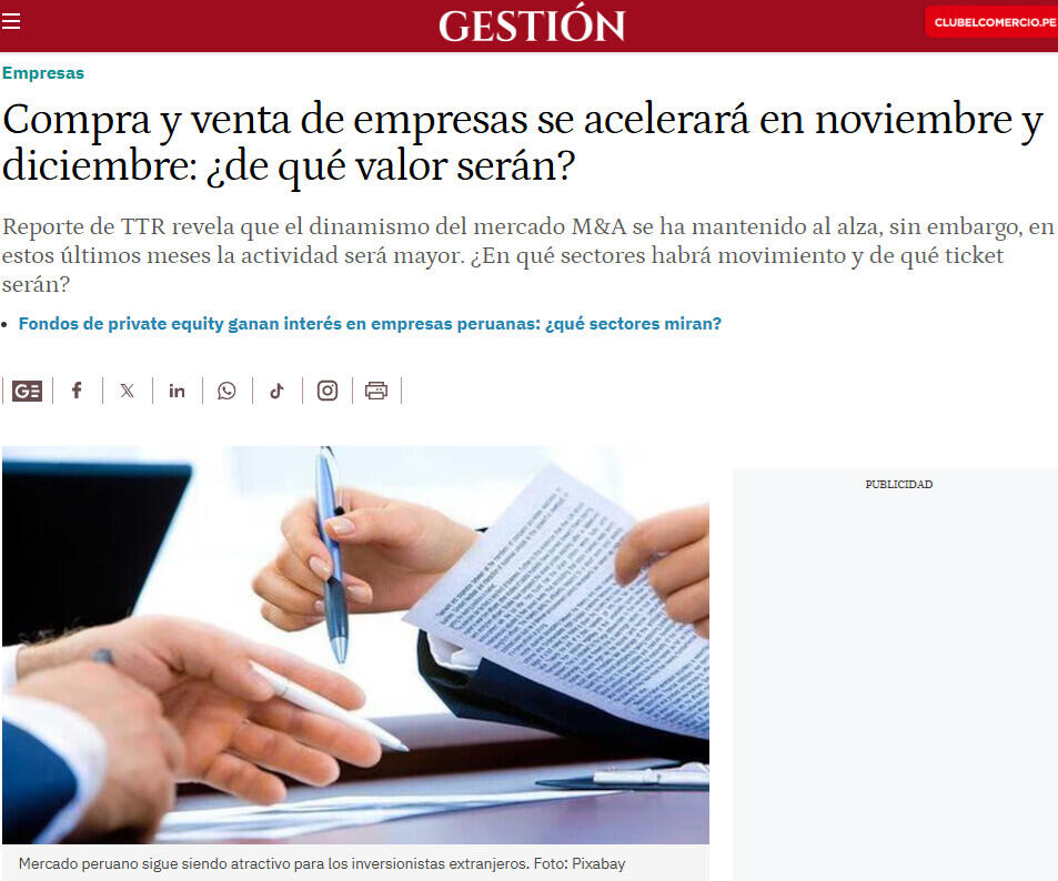 Reporte de TTR revela que el dinamismo del mercado M&A se ha mantenido al alza, sin embargo, en estos últimos meses la actividad será mayor. ¿En qué sectores habrá movimiento y de qué ticket serán?