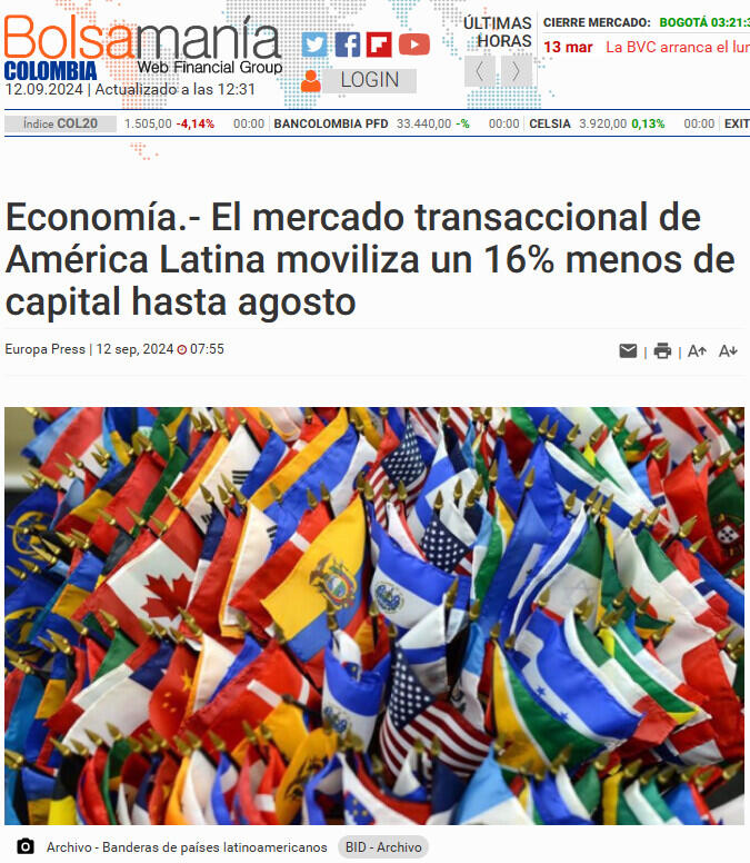 Economía.- El mercado transaccional de América Latina moviliza un 16% menos de capital hasta agosto