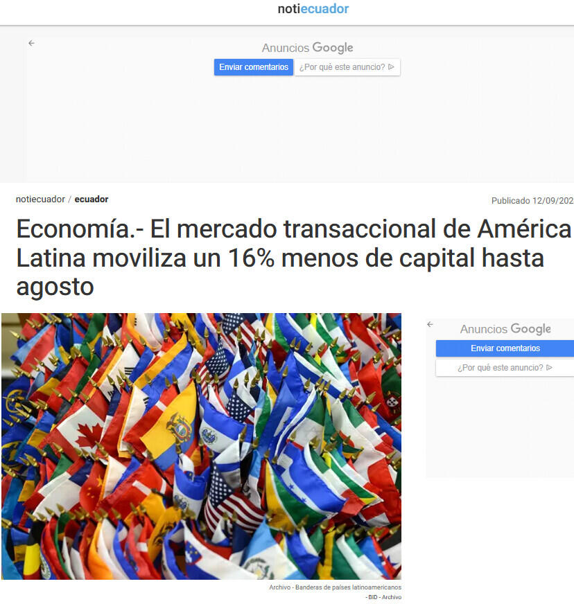 Economía.- El mercado transaccional de América Latina moviliza un 16% menos de capital hasta agosto