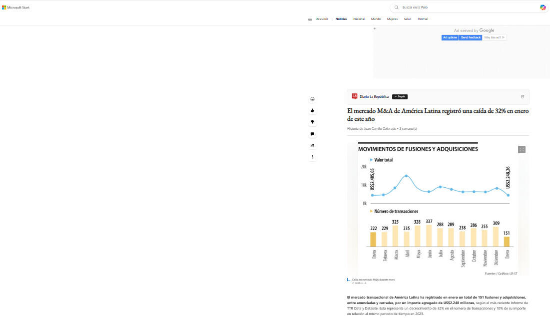 El mercado M&A de América Latina registró una caída de 32% en enero de este año